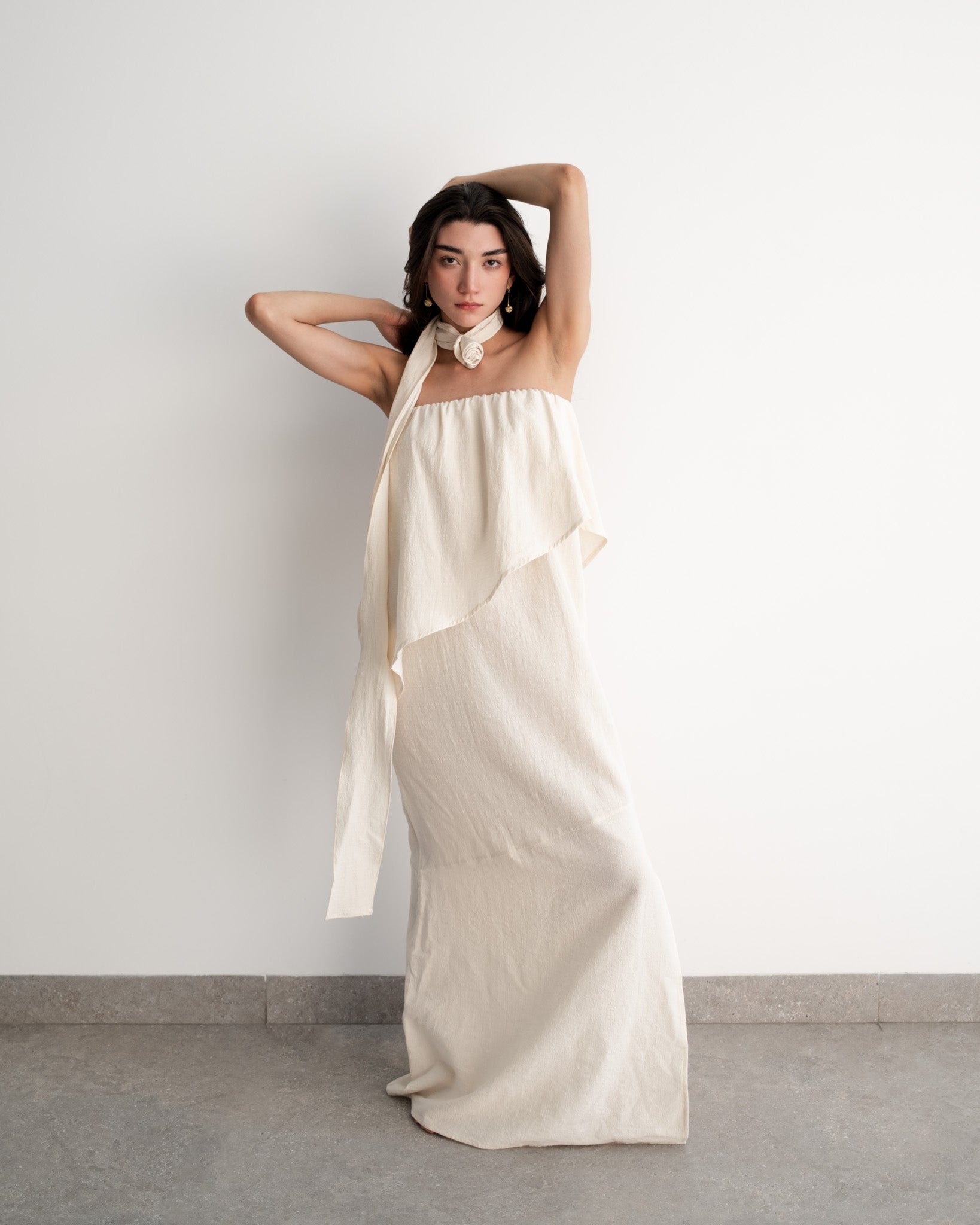 The Valeria dress is an expression of freshness and femininity. Its strapless design with elastic at the top offers security without sacrificing comfort, while the straight cut and side leg slit visually lengthen the silhouette and add a subtle touch of sensuality.